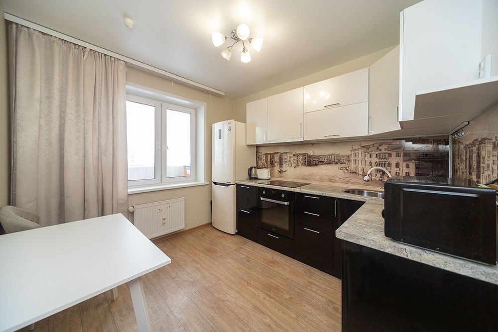 - На просторной кухне для вас остается кухонный гарнитур.