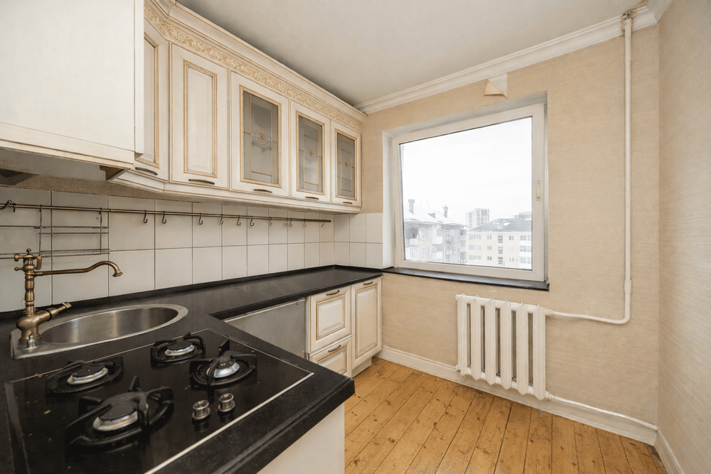 - Квартира требует ремонта. На окнах - стеклопакеты, пол - натуральные деревянные полы и плитка.
