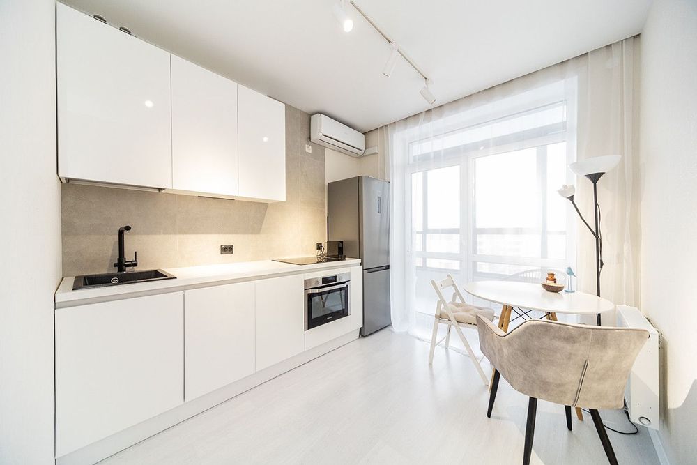 - Кухня оснащена хорошим кухонным гарнитуром и встроенной бытовой техникой
