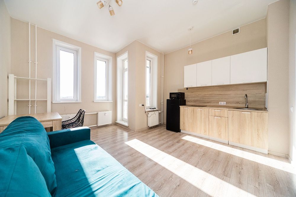 - Полностью укомплектована мебелью для комфортного проживания: кухонный гарнитур, микроволновка, холодильник и варочная панель — готовьте с удовольствием.