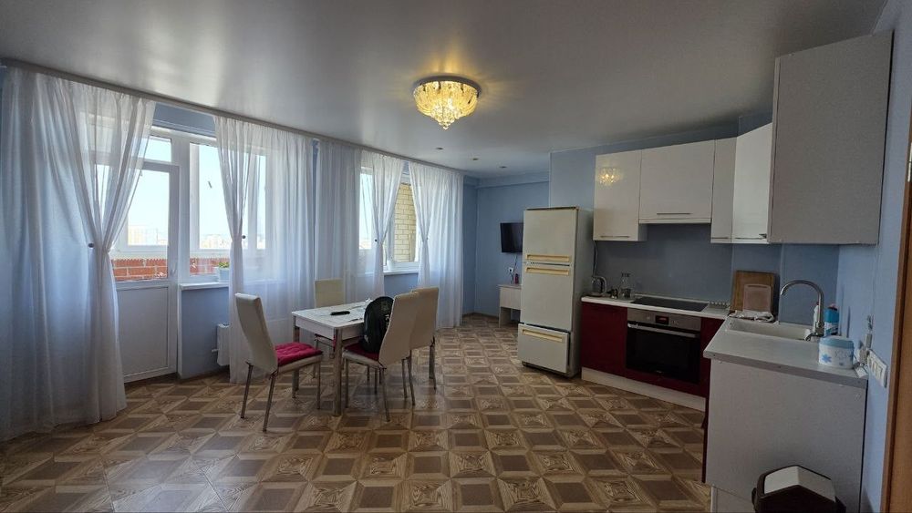 - Квартира оборудована всем необходимым для жизни: диван, кровать, шкафы, гарнитур, варочная панель, стол обеденный, стулья, тумбочки прикроватные, телевизор.