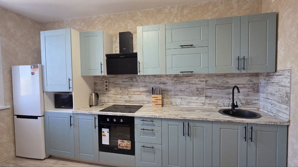 - Квартира оборудована всем необходимым для жизни: кухонный гарнитур, варочная поверхностью, духовой шкаф, микроволновая печь, холодильник, чайник, пароварка, тв, стиральная машина , комплект посуды и кухонных принадлежностей гладильная доска, утюг, сушилка для белья