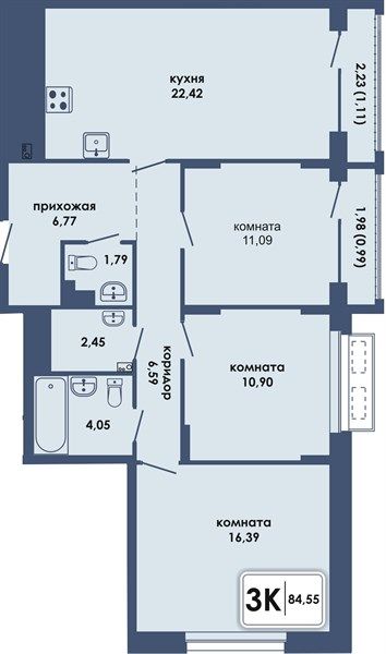 Отделка Премиум. Дизайнерская отделка уровня бизнес-класс. Вам останется лишь наполнить квартиру мебелью и расставить акценты. Потолок натяжной белый матовый. Двери межкомнатные: композитный материал с применением высококачественного соснового бруса и MDF. Обои горячего тиснения. Пол – ламинат, SPC плитка. Ванная/санузел: стены и пол - керамогранит. Ванна акриловая, унитаз - инсталляция. Раковина, тумба под раковину подвесная. Коридор: стены – декоративная покраска. Покрытие пола на балконе/лоджии – керамическая плитка, освещение и розетка.