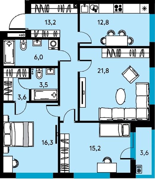 От однокомнатных до больших квартир со свободной планировкой и тремя ванными комнатами, ‒ здесь можно найти подходящую планировку для самых разных жизненных сценариев. Практически во всех квартирах есть большие гардеробные, лоджии и увеличенные окна. Планировки квартир от евро-3 и больше предусматривают мастер-спальни с собственными ванными комнатами и гардеробными. Особенно выделяются квартиры на на 30-ом этаже ‒ здесь потрясающий вид на город и квартиры со свободной планировкой.