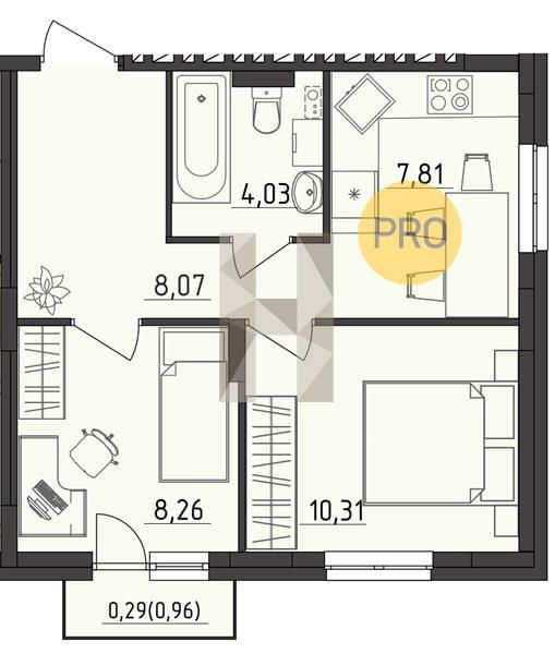 Чистовая отделка: металлическая входная дверь, ламинат 32 класса, виниловые обои, межкомнатные двери из эко-шпона, матовый натяжной потолок, окна с двухкамерными стеклопакетами, стальные радиаторы с терморегулятором, электротехническая разводка с установленной электрофурнитурой, в санузлах керамическая плитка в мокрой зоне и влагостойкая краска на других стенах, белый матовый натяжной потолок. Сантехника: ванна, унитаз, раковина и смесители, полотенцесушитель.