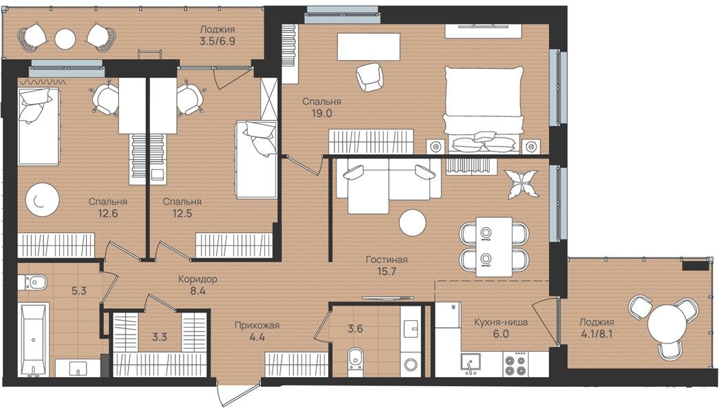 Планировки под разные сценарии жизни — классические и евро. Квартиры на последних этажах с увеличенной высотой потолков. Решения для отдыха на свежем воздухе: классические балконы, французские балконы, лоджии и террасы.